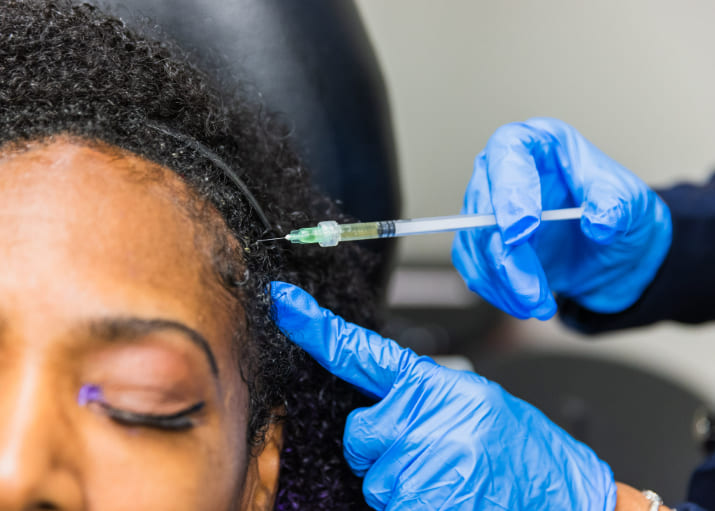 Once prepared, the PRP is carefully injected into the scalp in areas of thinning or shedding hair. These growth factors help stimulate dormant hair follicles, increase blood flow, and extend the active growth phase of the hair cycle.